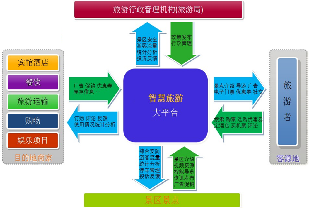 智慧旅游,是以云計算、物聯(lián)網(wǎng)、大數(shù)據(jù)、3S等技術(shù)在旅游管理、旅游體驗、產(chǎn)業(yè)發(fā)展等方面的應(yīng)用,使旅游物理資源和信息資源得到高度系統(tǒng)化整合和深度開發(fā)激活的全新旅游形態(tài)。智慧旅游將服務(wù)于公眾、政府和企業(yè),其核心是以游客為本的高效旅游信息化服務(wù),體現(xiàn)在旅游管理、旅游服務(wù)和旅游營銷三個方面。
