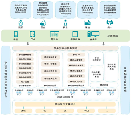 移動醫(yī)療就是通過使用移動通信技術——例如PDA、移動電話和衛(wèi)星通信來提供醫(yī)療服務和信息,具體到移動互聯(lián)網(wǎng)領域,則以基于安卓和iOS等移動終端系統(tǒng)的醫(yī)療健康類App應用為主。移動醫(yī)療解決方案基于移動計算、智能識別和無線網(wǎng)絡而設計,實現(xiàn)醫(yī)護移動查房和床前護理、病人藥品和標本的智能識別、人員和設備的實時定位、病人呼叫的無線傳達功能等。系統(tǒng)不僅可以幫助醫(yī)院優(yōu)化流程、提高醫(yī)療效率,同時可以幫助醫(yī)院實現(xiàn)“以病人為中心”的管理理念。